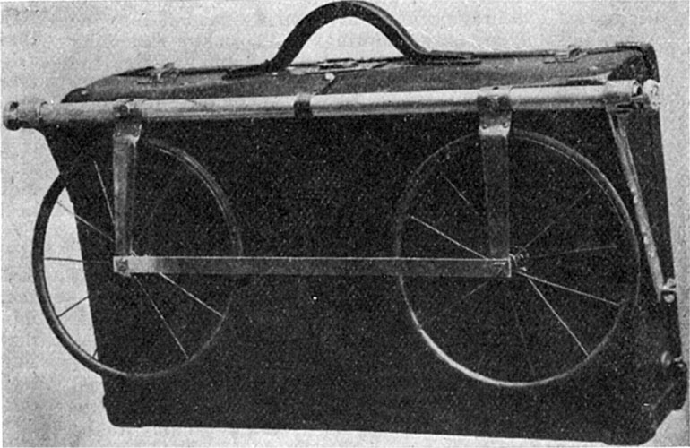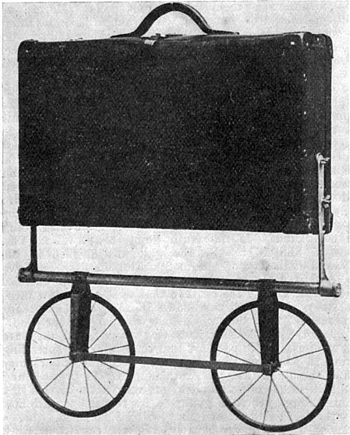 Jeden z kolporterów, brat Cole, wspaniale rozwiązał ten problem. Wymyślił on urządzenie składające się z dwóch kółek, które w ciągu pięciu minut można przymocować do każdej zwykłej walizki, bez zbytniego uszkadzania jej, z wyjątkiem wywiercenia dwóch otworów. Przy pomocy tego urządzenia można wesprzeć cały ciężar książek na kołach, a całość łatwo da się prowadzić przy użyciu uchwytu walizki. Do transportu kółka można złożyć, tak że przylegają do ścianki walizki. Cały mechanizm jest dość lekki. Urządzenie będzie do nabycia dla kolporterów po cenie $2,50 plus koszty przesyłki.
