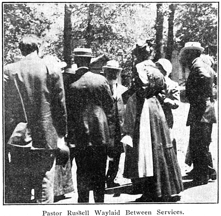 Konwencja w Pertle Springs była jedną z najprzyjemniejszych w tym roku. Uczestniczyło w niej łącznie około tysiąca pięciuset badaczy Pisma Świętego. Tereny konwencyjne usytuowane były mniej więcej półtorej mili od Warrensburga w stanie Missouri i można było do nich dojechać niewielką kolejką zwaną „Dummy” [od ang. „marionetka”]. Mała lokomotywa z dwoma otwartymi wagonami sapiąc i prychając przeciskała się między wzgórzami obok kilku niedużych jezior, zapewniając uroczą przejażdżkę. Większość przyjaciół została zakwaterowana na terenie konwencyjnym, co było bardzo wygodne. Sala znajdowała się na jednym wzgórzu, a hotel na drugim. Obydwa wzgórza łączyła długa kładka dla pieszych. W niewielkiej dolince między nimi znajdowało się źródło, od którego swą nazwę wywodzi zarówno to miejsce, jak i stacja kolejki. Na okolicznych wzgórzach rośnie wiele wspaniałych dębów. Niektórzy z przyjaciół przywieźli ze sobą namioty i obozowali między drzewami. Konwencję rozpoczął brat A. H. MacMillan, który był jej przewodniczącym. (...)