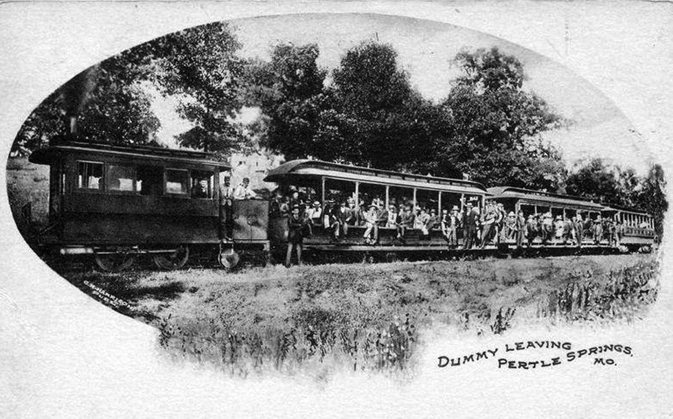 Kolejka „Dummy Line” z Warrensburga do Pertle Springs; zdjęcie wykonane na początku XX w.