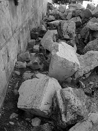 Kamienie zburzonego przez Rzymian muru drugiej świątyni Jerozolimskiej (Wikipedia)