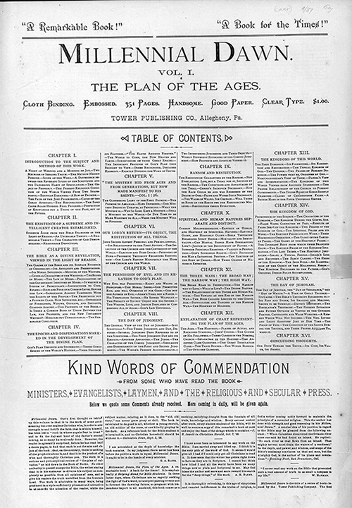 Każdemu szczeremu czytelnikowi pragnącemu rozpowszechniać prawdę polecamy plan przedstawiony w „Widoku z wieży” z ostatniego numeru. Wiele osób go zastosowało w swej działalności. Po obniżeniu ceny jeden z braci sprzedał 59 sztuk broszurowego wydania Brzasku w ciągu jednego tygodnia. Książka rozchodzi się bardzo dobrze. Nie trzeba o niej zbyt wiele mówić. Spis treści i sama książka zrobią to najlepiej za siebie. Należy się spodziewać, że każdy inteligentny chrześcijanin będzie chciał nabyć ten tytuł, więc mówcie i działajcie zgodnie z tym przekonaniem, a osiągniecie stosowny sukces. Niedługo sprzedaż sięgnie 50 tys. egzemplarzy, a jeśli fundusze Wydawnictwa pozwolą, będziemy chcieli dojść do 80 albo nawet 100 tys. [Dotyczy wydania ZWT 1887]